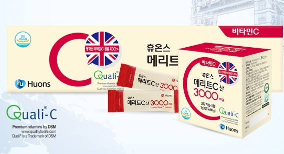 휴온스 메리트 C 산 3000mg는 분말 형태로 된 제품으로 하루에 1포만 간단하게 섭취하면 되는 제품이에요! 휴온스 비타민은 영국 DSM사의 영국산 비타민C 원료 Ascorbic Acid 100%만을 사용하고 있다는 특징이 있는데요, DSM 사의 영국산 비타민C는 1934년 세계 최초로 생산된 이후 80여 년간 전 세계에서 꾸준히 판매되며 신뢰성을 인정받고 있는 우수한 비타민C입니다. 이 원료는 자연에서 추출한 원료로 옥수수에서 추출, 발효, 농축, 정제 등의 과정을 통하여 유전자 변형 없이 만들어졌다고 해요!