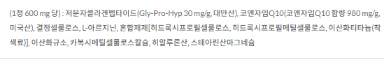 에버콜라겐 코큐의 성분은 저분자콜라겐펩타이드과 코엔자임 Q10으로 구성되어 있습니다.