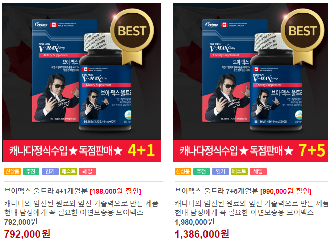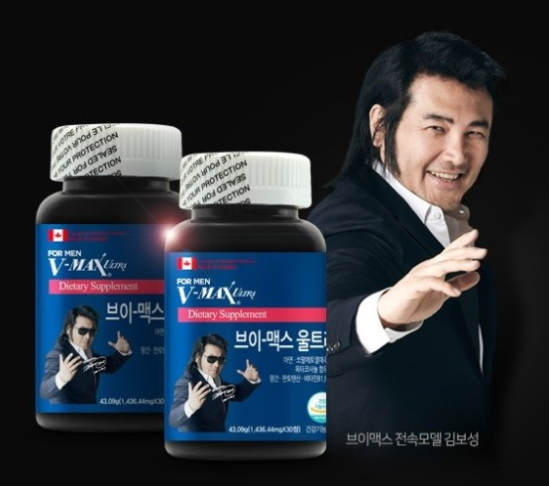 브이맥스 울트라는 남성건강기능식품으로 유명한 캐나다에서 만들어진 제품입니다. 브이맥스는 김보성씨가 전속모델로 활동 중인 제품인데요 김보성씨를 떠올리면 의리, 남자다움, 열정 등이 떠오르잖아요! 그래서 그런지 제품이 눈에 확 들어왔던 것 같아요.