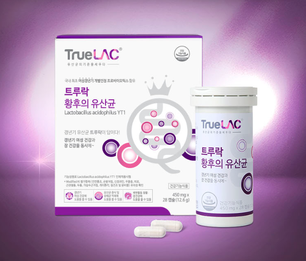 트루락 황후의 유산균의 주 원료는 바로 갱년기 유산균 YT1이라 불리는 락토바실러스 아시도필러스 YT1를 사용하였습니다. 트루락 황후의 유산균은 프로바이오틱스에 갱년기 기능성 소재를 혼합한 제품이 아닌 갱년기 여성 건강 기능성을 인정 받은 단일 원료의 프로바이오틱스라는 것이 특징이에요!
