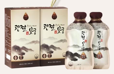 관절보궁 보는 액상타입으로 되어있어요. 한 포에 60ml가 들어있는데 하루에 두 포를 섭취하시면 됩니다!