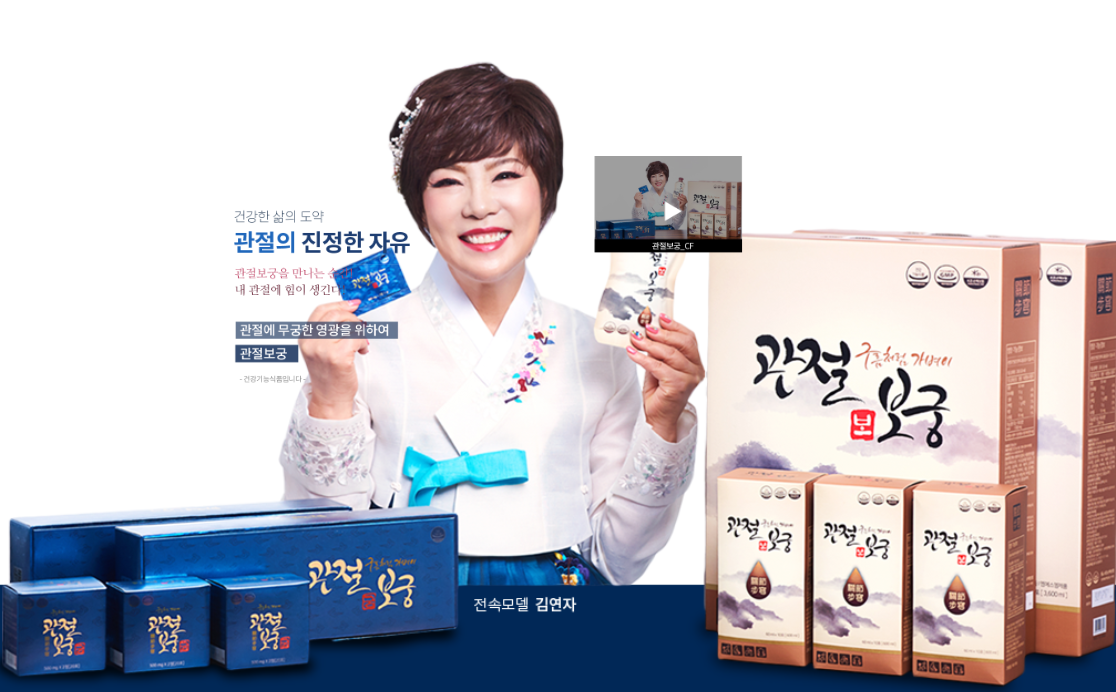 관절보궁은 트로트가수 김연자씨가 전속모델로 활동 중인 제품으로 관절건강에 도움을 줄 수 있는 건강식품이에요.
