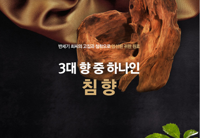 왕이 사랑한 침향이라 불리며 세계 3대 향 중 하나입니다. 침향나무에 상처가 나면 스스로 상처를 치유하기 위해 만들어내는 것으로 고가의 귀한 원료입니다. 침향은 뇌줄중 예방, 신장, 혈관 건강과 치매 예방 등에 효과가 있습니다.