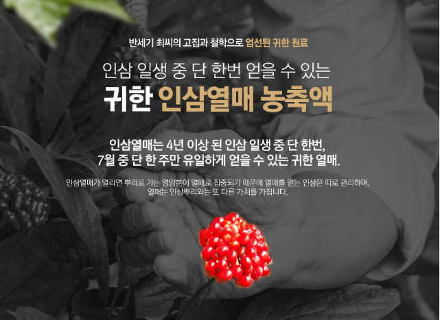 인삼열매 속에는 진세노사이드 성분이 풍부하여 혈관 손상을 억제하고 체내 에너지 촉진, 당뇨 예방, 간 기능 개선, 갱년기 증상 완화 등의 다양한 효과를 기대할 수 있습니다.