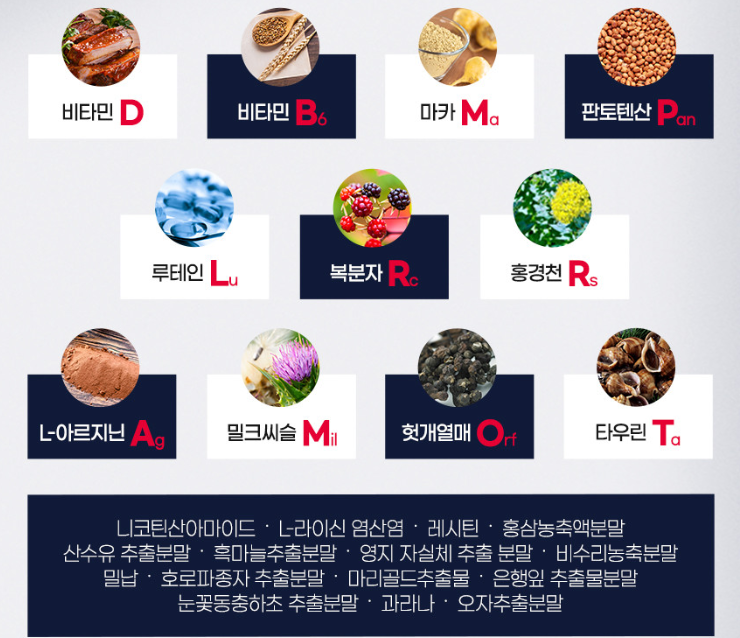 킹스맨 스트롱은 이와 더불어 각종 비타민과 마카, L-아르지닌, 밀크씨슬, 루테인 등 엄선된 26가지의 부원료가 함유되어있어서 남성 건강과 더불어 면역력 강화, 간, 눈 건강에도 도움을 줄 수 있는 건강식품입니다.