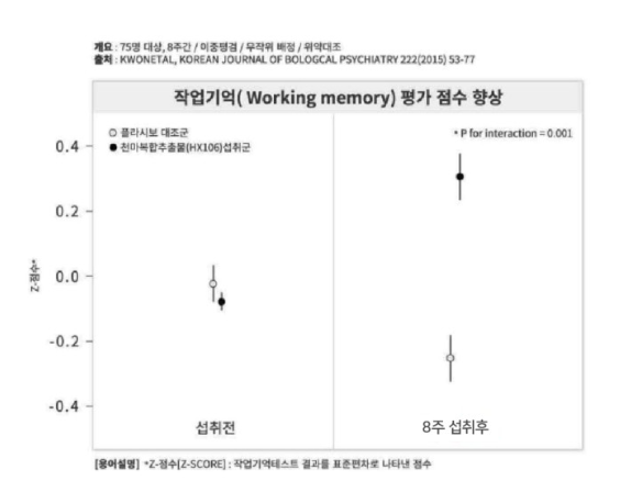 테라브레인의 주 성분을 살펴보면 천마, 맥문동, 용안육, 단삼으로 이루어져있는 천마 등 복합추출물(HX 106)을 사용하였습니다. 천마 등 복합추출물은 한국, 미국, 일본, 유럽에서 특허를 획득한 기능성 개별 인정형 원료로 두뇌 건강, 기억력에 도움을 줄 수 있는 원료입니다. 실제로 8주간 천마복합추출물을 사람을 대상으로 섭취하게 하였더니 작업 기억이 향상되는 결과를 확인할 수 있었어요.