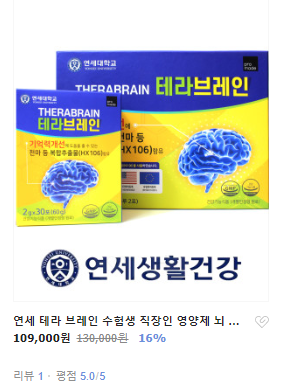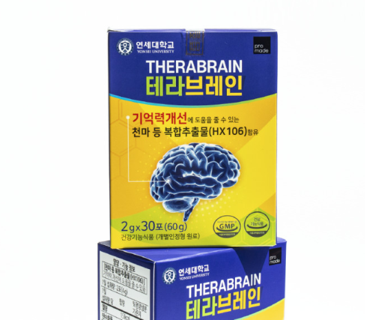 테라브레인은 연세생활건강과 온누리아이코리아가 공동으로 개발한 뇌 영양제로 출시한 지 세 달만에 2만 개가 완판되는 등 많은 인기를 끌고 있는 제품입니다.
