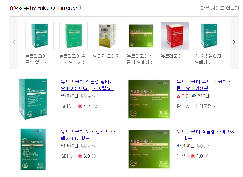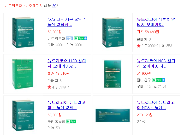 뉴트리코어 알티지 오메가3는 온라인 상에서 쉽게 구매하실 수 있는데요, 제가 검색해본 뉴트리코어 NCS 알티지 오메가3의 가격은 860mg x 30캡슐 기준 51,000원 정도의 가격이 가장 저렴했습니다!