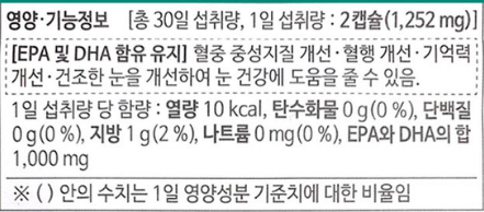 정제어유 (EPA와 DHA의 합 80%, 스페인산),