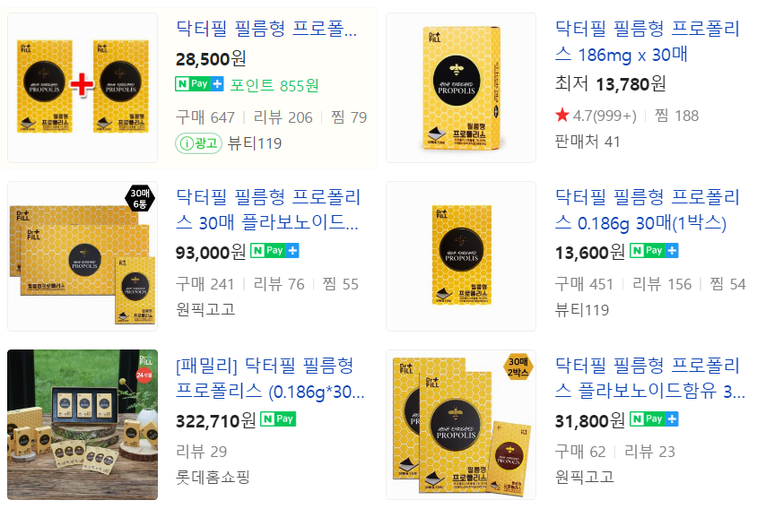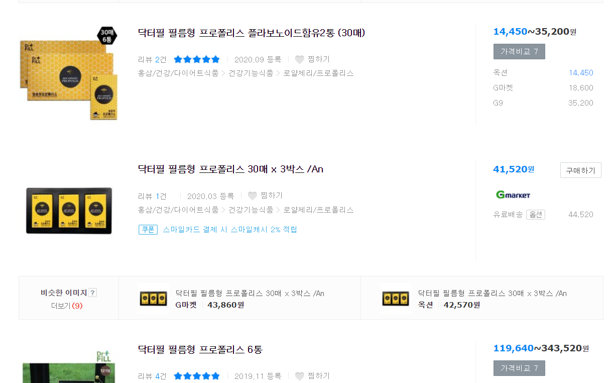 닥터필 필름형 프로폴리스는 현재 30매 기준으로 약 13,000~14,000원 정도의 가격대가 형성되어 있었어요!