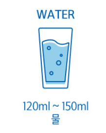 120ml ~ 150ml 물에 34g를 넣은 후