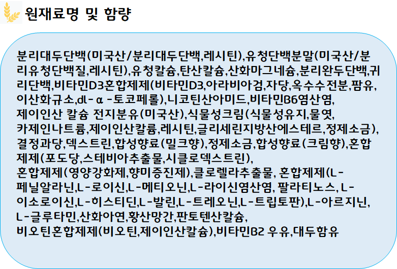 프리미엄 단백질로 성분의 효능은 다음과 같습니다.