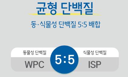 동물성 단백질과 식물성 단백질이 5:5로 구성이 되어있습니다.