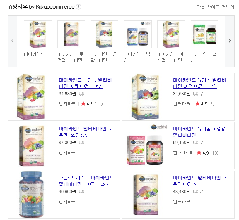마이카인드 멀티비타민은 온라인 상에서 쉽게 구매하실 수 있는데요 제가 찾아본 가격은 30정 기준으로 34,000원 대의 가격이 가장 저렴했어요! 그리고 임산부용은 만원 정도 더 비쌌습니다. 60정, 120정 대량으로 사면 좀 더 저렴하기 때문에 온가족이 드시거나 꾸준히 드실 분은 대량으로 구매하는 것도 나쁘지 않은 것 같습니다.
