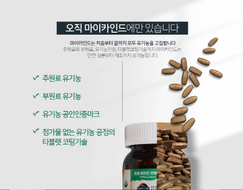 마이카인드 멀티비타민는 5년 연속 미국 판매 1위(SPINSscan Natural 기준 2015-2019) 유기농 비타민 브랜드 마이카인드에서 만들어진 제품이에요! 마이카인드 멀티비타민은 주원료, 부원료를 모두 유기농 재료를 사용하고 있는 100% 유기농 제품이라고 해요! 농약이나 화학비료가 몸에 점점 쌓이면 여러 질환들을 유발하게 되는데 그러한 걱정없이 섭취할 수 있는 멀티비타민이라 더욱 믿음이 갔습니다.