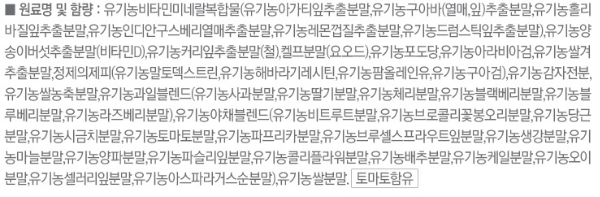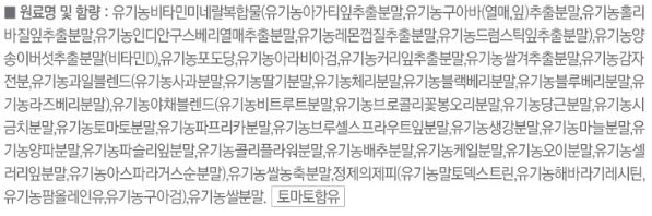 유기농 재료로 만들어진 제품이다보니까 부작용이 거의 없다고 알려져있지만 너무 과다하게 섭취하시면 메스꺼움, 어지러움 등의 증상이 발생할 수 있으니 꼭 하루 권장 섭취량을 지켜서 복용하시길 바랍니다. 섭취 시 위장장애나 소화불량 등이상 반응이 있을 경우 바로 섭취를 중단하시고 다른 약물을 복용하시거나 병원에서 치료 중이신 분들은 전문의와 상의 후 복용하시길 바랍니다.