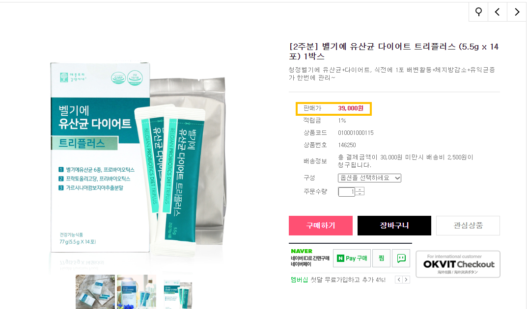 벨기에 유산균 다이어트 트리플러스 가격