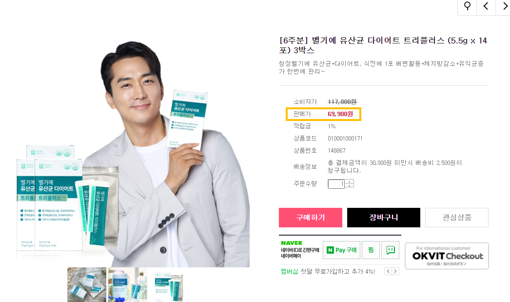 벨기에 유산균 다이어트 트리플러스는 현재 공식 홈페이지에서 2주분 기준 39,000원 6주분 기준 69,900원에 판매하고 있었어요!