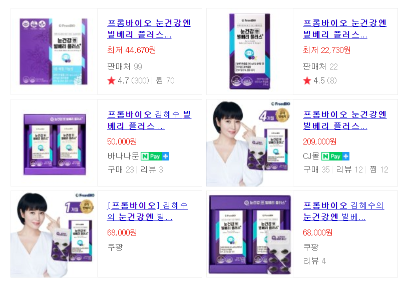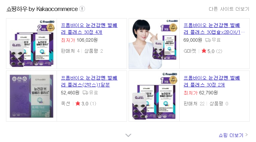 눈건강엔 빌베리 플러스 가격은 제가 찾아보니까 30정 x 2개 (1달분) 기준으로 44,000원 정도의 가격이 가장 저렴했습니다!