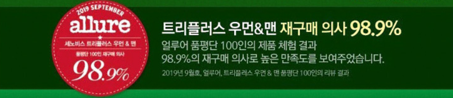 세노비스 트리플러스는 호주 건강기능식품 1위 기업에서 만들어진 제품으로 오메가3와 각종 비타민, 미네랄을 함유하고 있는 건강기능식품이에요. 저는 건강식품을 선택할 때 재구매율을 주의깊게 보는 편인데요, 세노비스 트리플러스는 얼루어 품평단 100인의 제품 체험 결과 무려 98.9%의 재구매 의사로 높은 만족도를 자랑하고 있는 제품이라고 해요.
