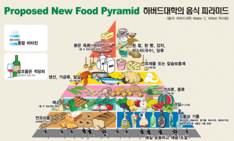 우리는 하루를 건강하게 살아가기 위해서는 여러 영양소를 균형있게 섭취해야 합니다. 아래 2008년에 하버드 대학에서 발표한 자료를 보시면 저 많은 음식을 매일 먹어주는 것을 권유하고 있어요. 하지만 실제로 우리들은 이 모든 음식을 섭취하는 것은 쉽지 않습니다.