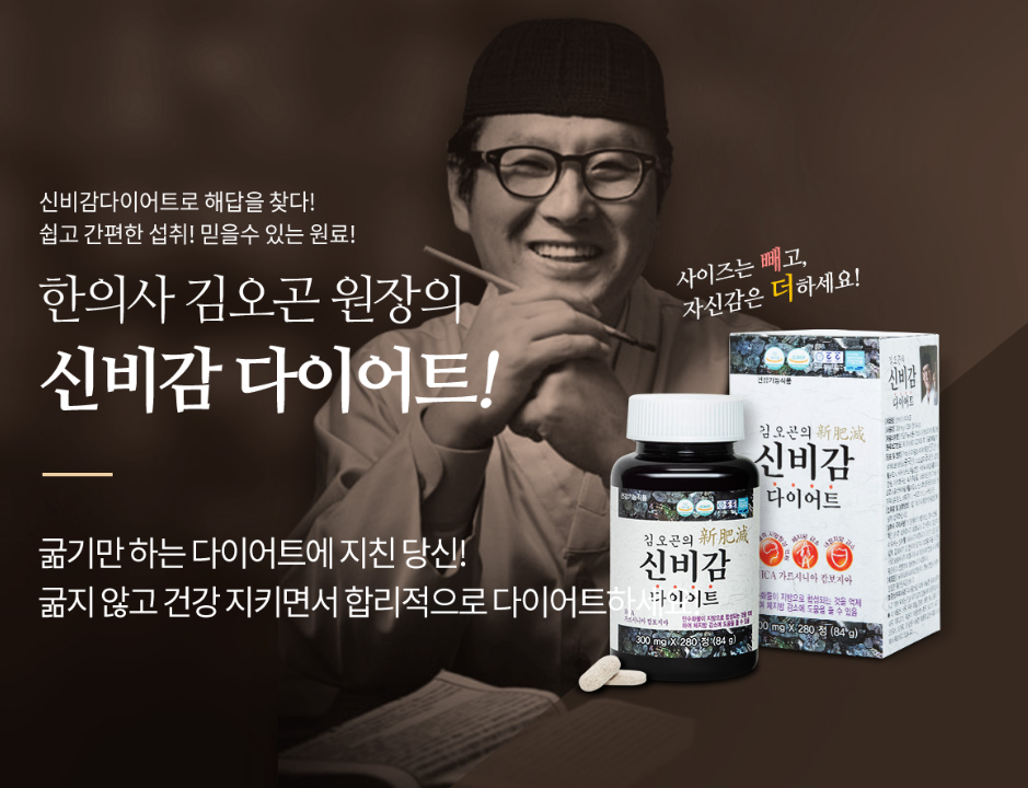 신비감 다이어트는 대한비만연구소에서 한의사 김오곤 원장님이 직접 성분 배합에 참여하여 만들어진 건강기능식품입니다. 신비감 다이어트는 다이어트 실패의 원인을 시작으로 굶지 않고 간편 섭취로 효과적인 다이어트 방법을 제안하고 있습니다.