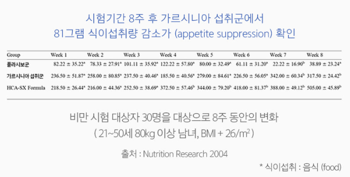 가르시니아는 남아시아에서 서식하는 가르시니아종 나무의 과일로 열매예요. 가르시니아는 껍질 부위에 HCA 함량이 타과실에 비해 높아서 전 세계적으로 연구되어 탄수화물 섭취 시 탄수화물에서 지방으로의 합성을 억제하여 체지방 감소에 도움을 준다고 해요! 실제로 가르시니아 추출물(HCA)에 대한 인체적용시험을 진행하였는데 체지방량이 감소하였고 식이섭취량 또한 감소되는 결과가 나타났다고 합니다.