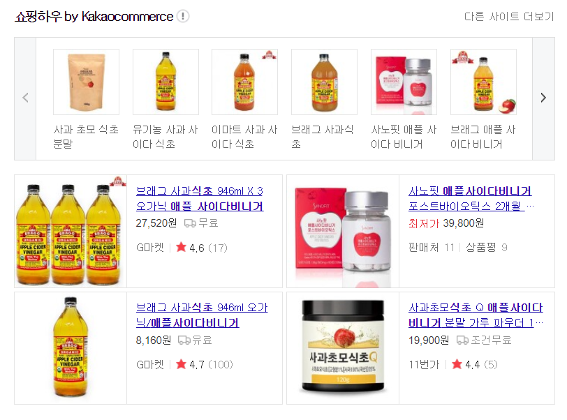 네이버나 다음과 같은 포털사이트에 '애플 사이다 비니거' 또는 '사과 초모 식초'를 검색하시면 액체, 분말 등의 다양한 형태로 판매 중입니다. 위에서 말씀드린 기준을 참고하셔서 좋은 제품 잘 선택하시길 바랍니다 :)