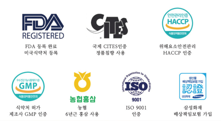 건강식품을 선택할 때는 제품의 안정성을 꼭 살펴보게 되는데요, 미국 식약처 FDA에 등록되어있고, 식품의 원재료 생산부터 소비자가 최종적으로 섭취하기 전까지 철저하게 관리하는 HACCP 인증 그리고 우수 건강기능식품 제조 기준인 GMP 인증을 받은 제조 시설에서 만들어진 제품이라고 하니 더욱 안심하고 섭취할 수 있는 것 같아요!