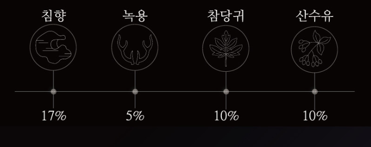 이밖에도 조선황림 침향환에는 침향과 더불어 녹용, 참당귀, 산수유, 천궁, 오미자, 홍삼, 로얄젤리 등의 원료가 배합되어 제조 되었습니다. 다시 말하자면 조선황림 침향환은 면역력 강화, 기력 회복, 영양 보충 등에 모두 강점을 가진 건강환이라고 말할 수 있겠습니다.