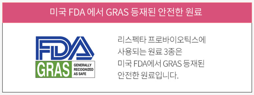 건강기능식품을 선택할 때는 꼭 제품의 안정성을 살펴보게 되는데요, 지노마스터 리스펙타 유산균은 미국 FDA에서 원료의 안정성을 검증 받고 국내에서는 식약처로부터 제품의 기능성, 안정성을 인정 받을 뿐만 아니라 우수건강기능식품 제조 기준인 GMP 인증 시설에서 만들어진 제품이라고하니 더욱 안심하고 섭취할 수 있는 제품인 것 같아요!