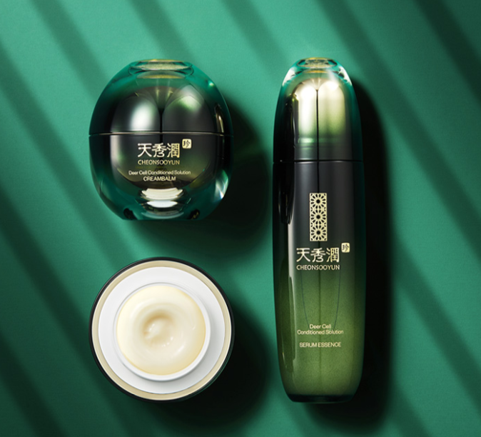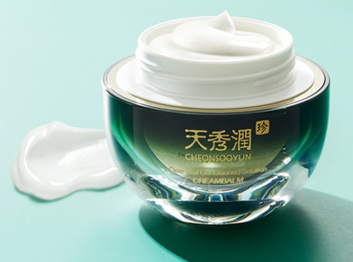 천수윤진은 세럼 에센스, 크림밤, 그리고 스페셜 크림밤 마스크 세 가지 라인업으로 구성 되어있습니다. 모두 피부 자극테스트를 완료한 제품들이고 미백과 주름 개선에 도움을 주는 기능성 화장품입니다. 각 화장품의 주 성분을 살펴보면 우선 녹용 중간엽 줄기세포 배양액이 공통적으로 함유되어 있습니다. 녹용은 사슴의 뿔이 매년 자라나고 떨어지는 것을 반복하는 습성이 있는데 이처럼 뛰어난 자생력으을 가진 녹용 줄기세포 배양액은 피부의 자생력을 키워주는데 도움을 준다고 합니다. 천수윤진 크림 밤에는 이 녹용 중간엽 줄기세포 배양액이 최대 50,000ppm이나 함유되었다고 해요!