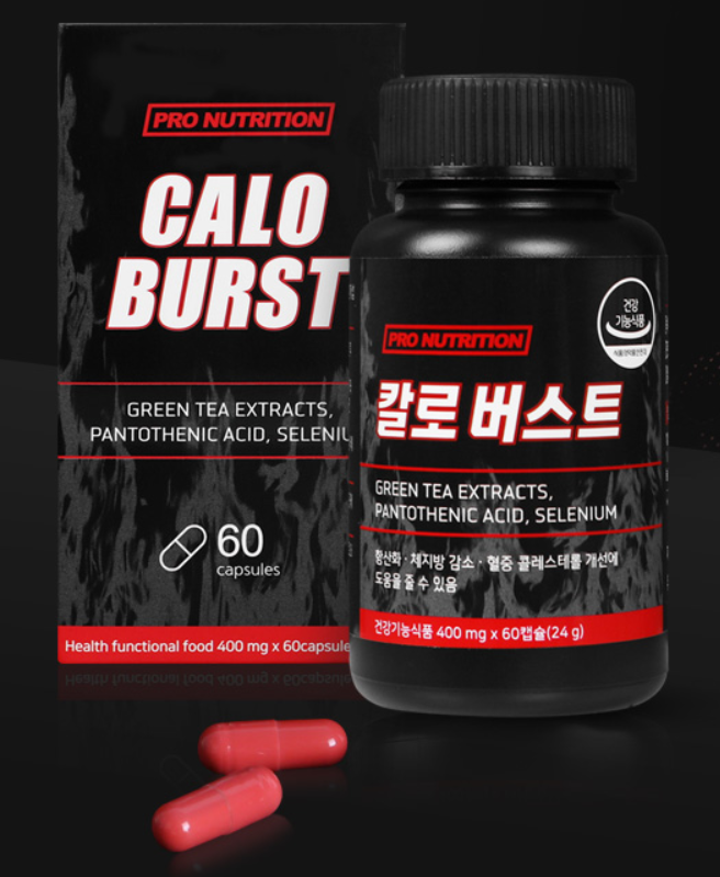 칼로버스트는 스포츠 뉴트리션 전문 브랜드 '프로 뉴트리션'에서 만들어진 다이어트 보조제에요. 칼로버스트는 다수의 연구를 통하여 체중 감소 효과가 입증된 카테킨 추출물을 다량 함유하여 체중 변화가 잦은 운동 선수 분들이 꾸준히 찾는 다이어트 보조제라고 합니다. 칼로버스트의 주요 성분은 바로 녹차카테킨추출물, 판토텐산, 셀레늄 이 세 가지 성분으로 이루어져 있는데요, 아래에서 자세한 효능을 살펴보도록 하겠습니다.