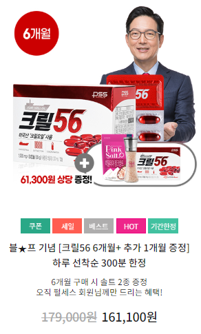 크릴오일 56은 현재 펄세스 공식 홈페이지에서 1개월 기준으로 37,000원에 판매하고 있었고, 블랙 프라이데이 기념으로 6개월, 12개월을 구매하시면 1개월 분을 추가로 증정하는 이벤트를 하고 있었어요. 이 점 참고하시길 바래요!