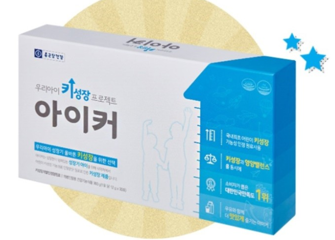 그래서 오늘은 아이들에 키성장에 도움이 될 수 있는 영양제를 하나 소개해드리려고 하는데요, 바로 종근당 건강에서 만들어진 아이커입니다!
