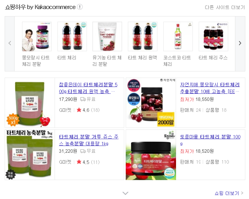 타트체리는 수확하면 바로 무르기 때문에 생과로는 먹기 힘들어서 많은 분들이 분말로 섭취하는 추세인데요, 네이버나 다음과 같은 포털사이트에 타트체리 분말을 검색하시면 많은 제품이 판매되고 있습니다. 제품이 너무 많아서 어떤 제품을 골라야 할지 고민이신 분들은 다음과 같은 기준을 참고하시면 좋을 것 같아요