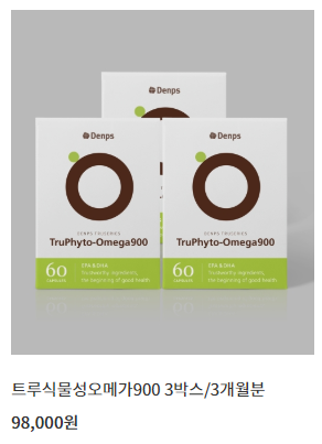 트루 식물성 오메가900은 덴프스에서 만들어진 제품으로, 런칭 이후 큰 사랑을 받았던 식물성 오메가3 제품 '트루오메가Q10'에 기능과 함량을 더하여 리뉴얼 된 제품이에요! 기존 제품은 혈중 중성지질 개선과 혈행 개선의 기능을 가진 2중 기능성 제품이었는데, 트루 식물성 오메가 900은 건조한 눈 개선과 기억력 개선 기능까지 더하였다고 해요!