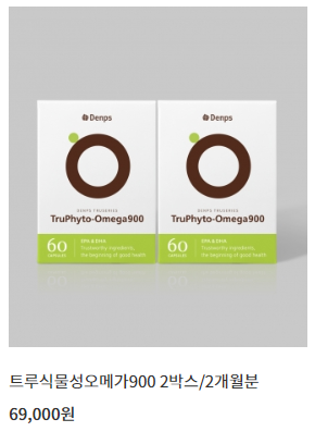 트루 식물성 오메가900은 현재 덴프스 공식몰에서 1개월분 65,000원에 판매하고 있었고, 2, 3개월분을 구매하면 더욱 저렴한 가격이었어요.