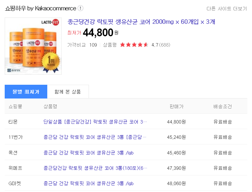 락토핏 생유산균 코어 제품은 온라인 상에서 쉽게 구매하실 수 있어요. 제가 직접 검색해보니까 60포 1통의 가장 저렴한 가격이 14,700원 이었어요.