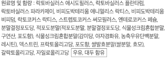 ※특이체질 및 알레르기 반응이 있으신 분들은 아래 성분표 참고하셔서 섭취 시 주의하시기 바랍니다.