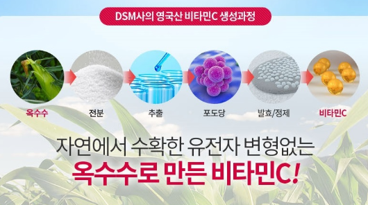 휴온스 메리트 C 산 3000mg는 분말 형태로 된 제품으로 하루에 1포만 간단하게 섭취하면 되는 제품이에요! 휴온스 비타민은 영국 DSM사의 영국산 비타민C 원료 Ascorbic Acid 100%만을 사용하고 있다는 특징이 있는데요, DSM 사의 영국산 비타민C는 1934년 세계 최초로 생산된 이후 80여 년간 전 세계에서 꾸준히 판매되며 신뢰성을 인정받고 있는 우수한 비타민C입니다. 이 원료는 자연에서 추출한 원료로 옥수수에서 추출, 발효, 농축, 정제 등의 과정을 통하여 유전자 변형 없이 만들어졌다고 해요!