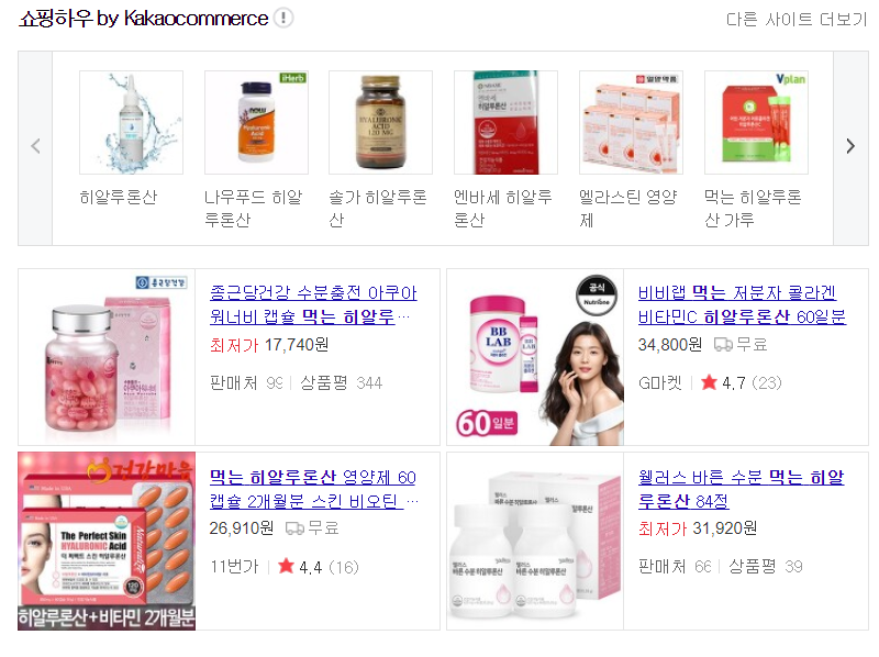히알루론산은 온라인 상에서 쉽게 구매하실 수 있습니다. 네이버나 다음과 같은 포털사이트에 히알루론산을 검색하시면 알약, 젤리 등 다양한 형태의 제품들이 판매되고 있어요!